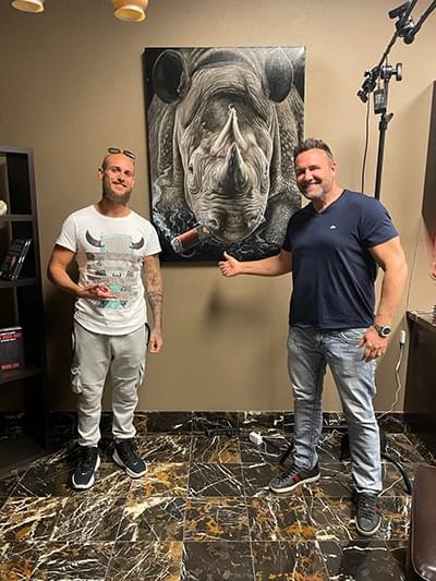 Dax is an Entrepreneur and award winning tattoo artist/fine artist, known for his eye-catching realistic details in his tattoos, paintings, and murals. He aims to transform empty walls into Walls of Inspiration one piece at a time.